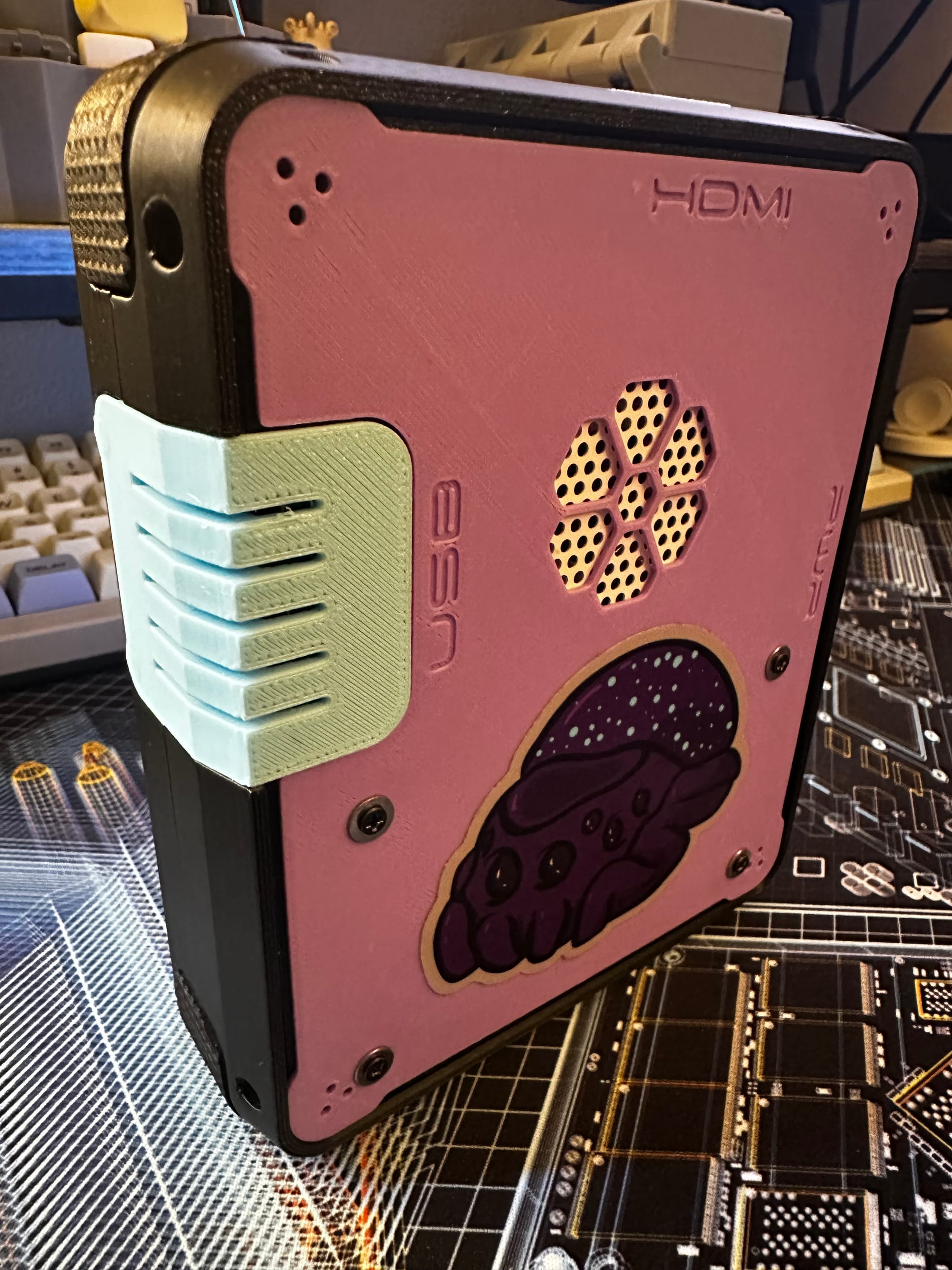 There are A LOT of homemade cyberdecks out there. I had to really narrow down the options to minimize the extra materials to purchase (mainly the keyboard which is... not great...). But I landed on the Cyberboy, and I'm actually pretty happy with the overall design. It's a really well thought out design and everything came together pretty seamlessly. Link below to the original design I printed (a few times since it's not a lot of materials overall).