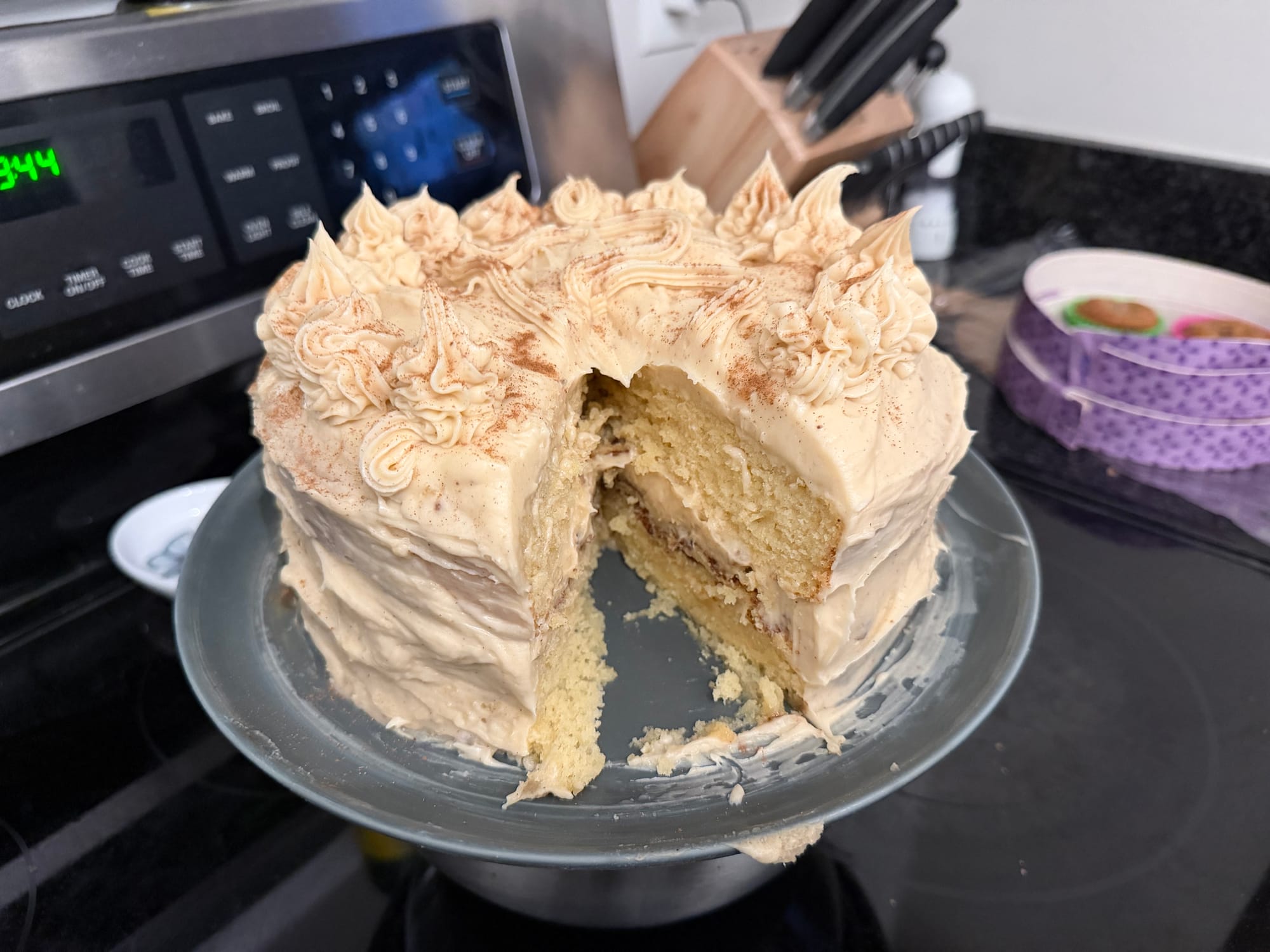 Next up are two of the more difficult things I've tried making recently--snickerdoodle cake and macarons. The cake actually wasn't too hard, the macarons were SO DAMN HARD! Those tiny little cookies are SO DELICATE!