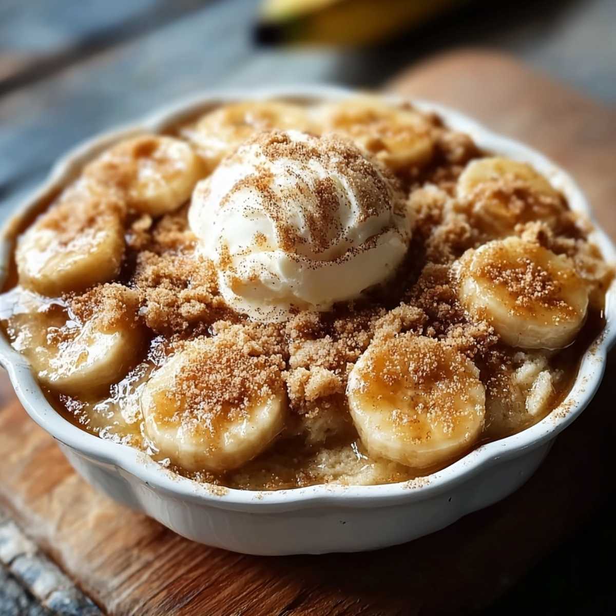 This banana cobbler with some whipped cream or ice cream is DIVINE (something my wife might say).